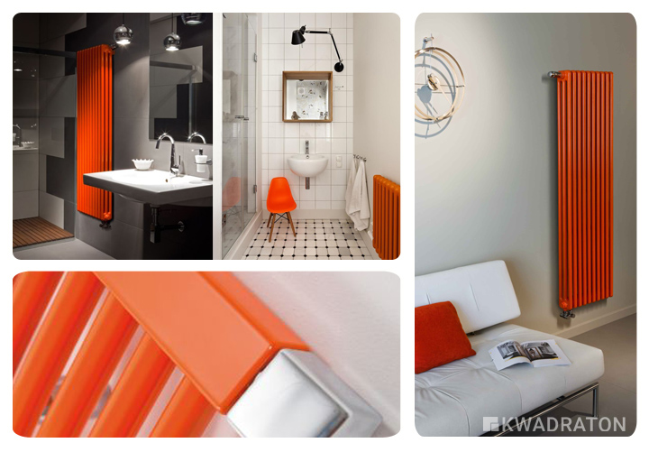 Pomarańcz w zestawieniu z szarością i bielą. Grzejnik w takim kolorze sprawi, że nasze wnętrze na pewno nie będzie nudne.