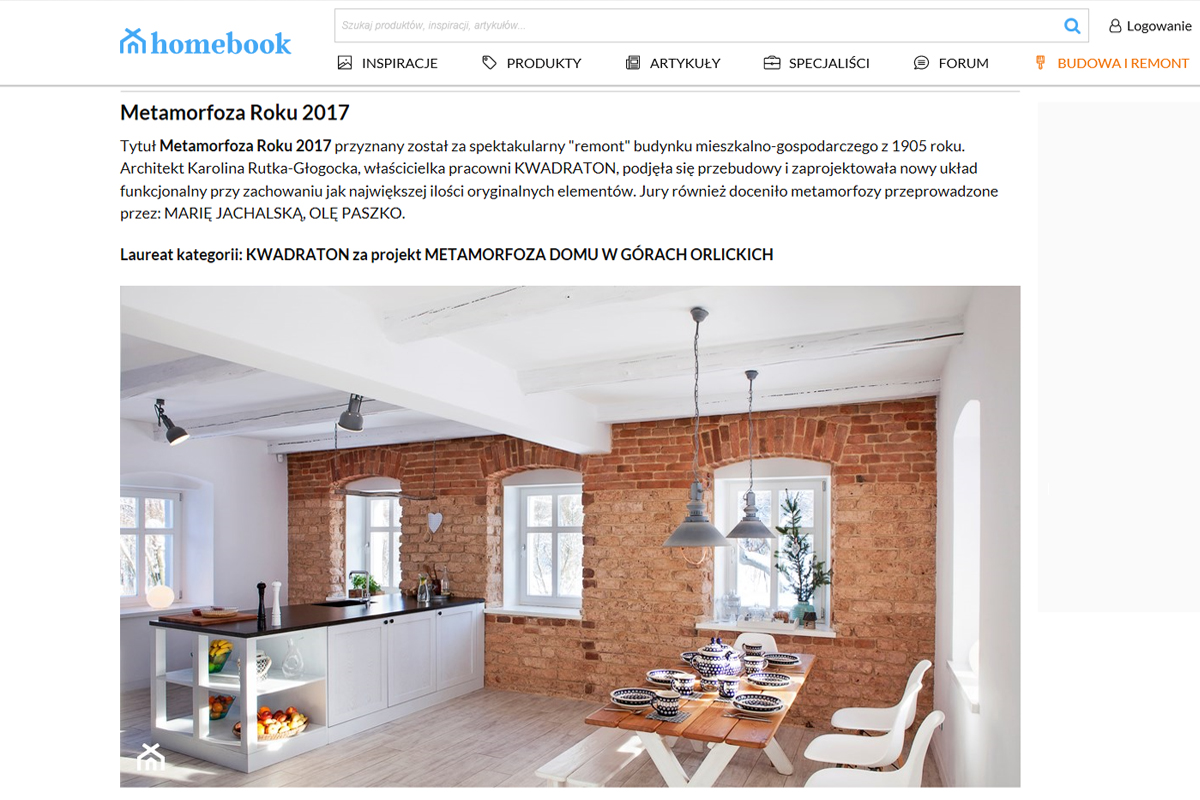 Nasza realizacja dom w Górach Orlickich otrzymała pierwsze miejsce w konkursie na metamorfozę roku 2017. Wszystkim głosującym na nasz projekt bardzo dziękujemy!