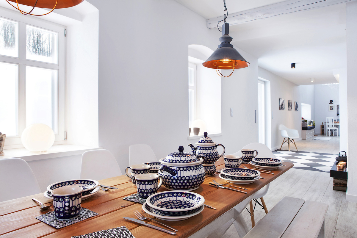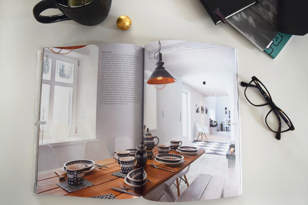 ” Wokół stołu – wnętrze domu urządzono w stylu nawiązującym do skandynawskiego  – są jasne, przytulne i przestronne, czyli dokładnie takie jak wymarzyli sobie właściciele. Zależało im na przestrzeni sprzyjającej spotkaniom rodzinnym, zabawom z wnukami, gotowaniu i biesiadowaniu z gronie najbliższych.  Takich chwilom sprzyja obszerna kuchnia z reprezentacyjnym stołem jadalnianym i przepastną, stylizowaną na retro oliwkową kuchenką. ”