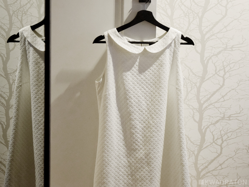Korpus szafy z drzwiami przesuwnymi wykonany zostały z czarnego forniru, zaś wnętrze ze srebrnej płyty firmy Egger. Szafa podzielona została na część dla „niej” i dla „niego”. Każda część zawiera szuflady z wpuszczonym uchwytem oraz część do wieszania ze zwykłym drążkiem i pantografem. Pantograf doskonale sprawdza się w małych szafach gdy chcemy zyskać łatwy dostęp do rzeczy powieszonych  w górnej części.