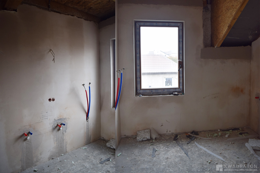 Łazienka na górze z przygotowanymi podejściami.
