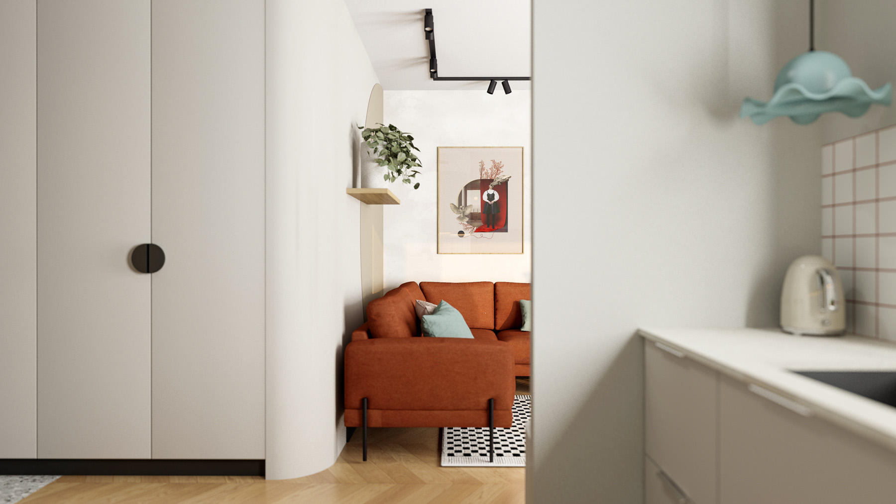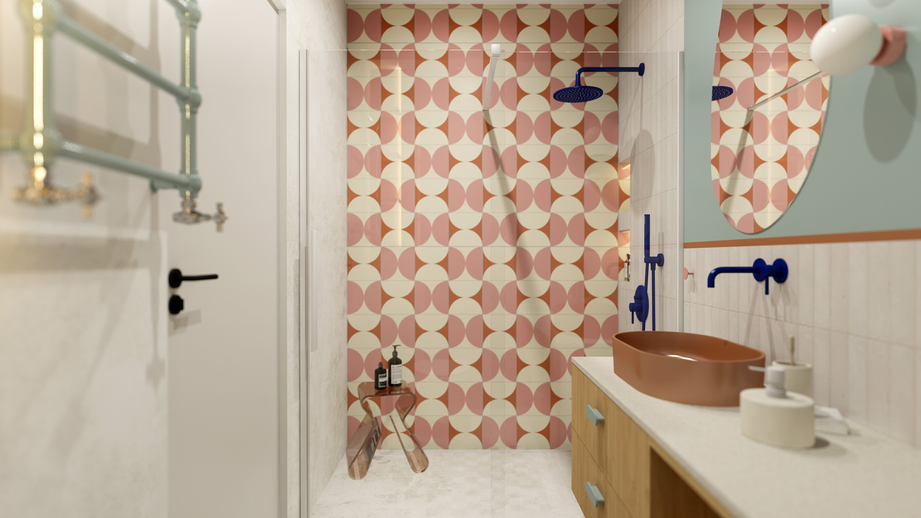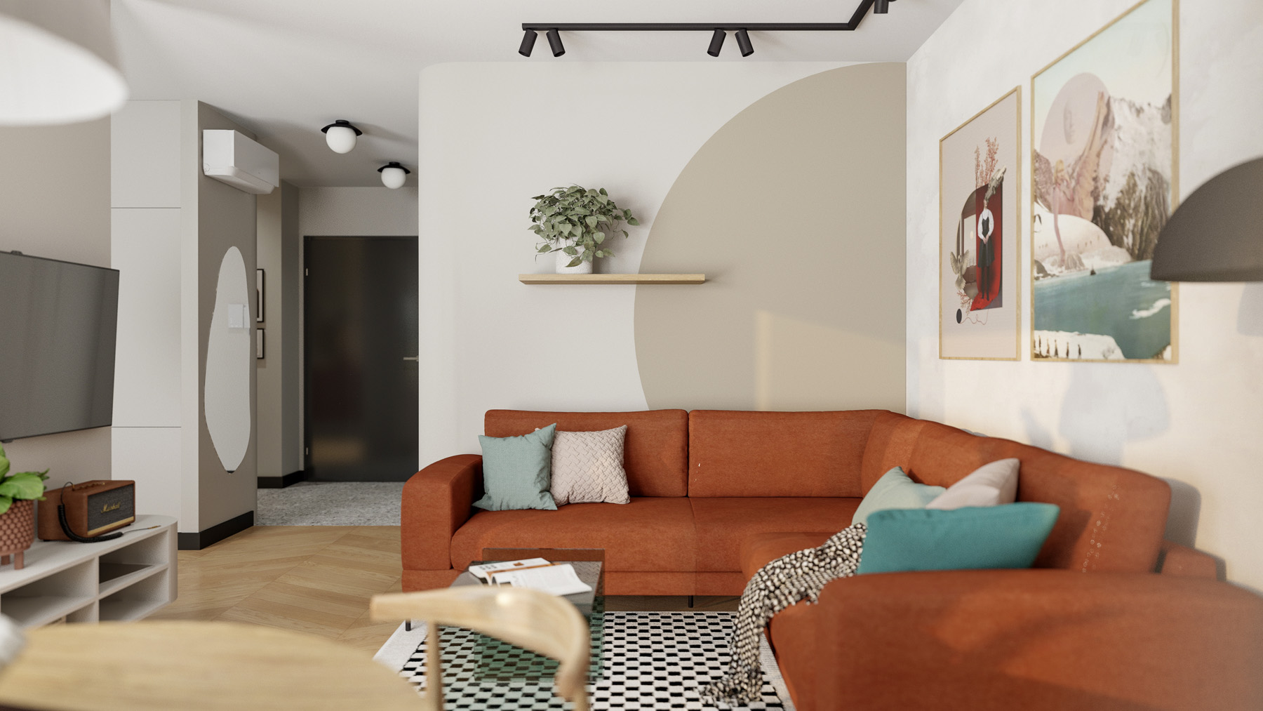 12345678910 GINGER APARTMENT Aranżacja o wyrazistych barwach i wzorach Rok: 2023 | Powierzchnia: 50 m² | Lokalizacja: Wrocław Inwestycja: Mieszkanie | Zakres: Wszystkie pomieszczenia