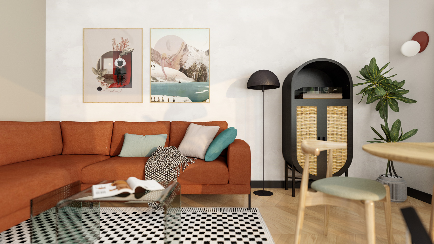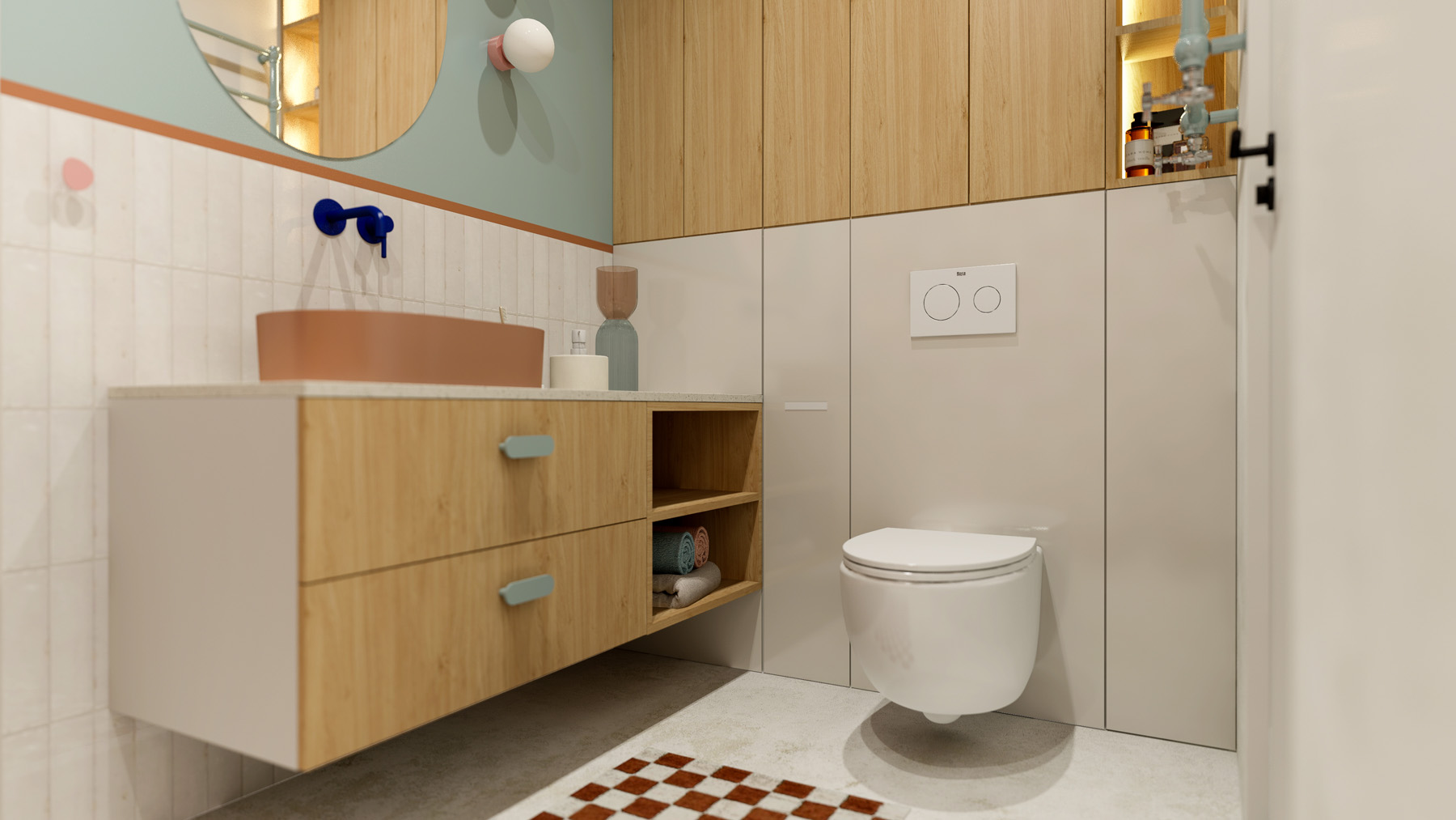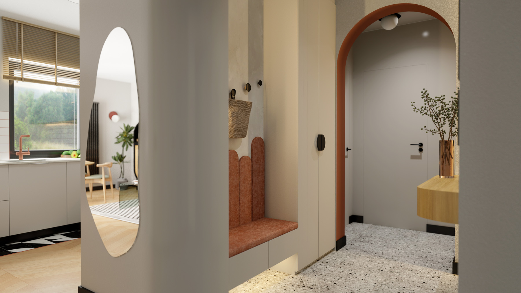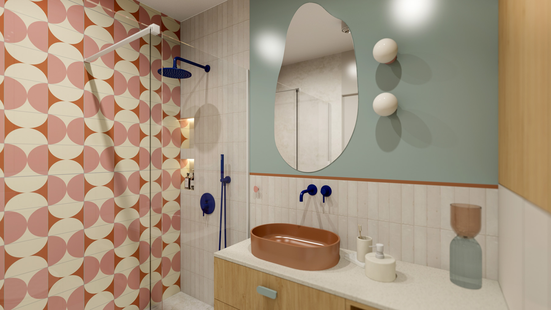 12345678910 GINGER APARTMENT Aranżacja o wyrazistych barwach i wzorach Rok: 2023 | Powierzchnia: 50 m² | Lokalizacja: Wrocław Inwestycja: Mieszkanie | Zakres: Wszystkie pomieszczenia